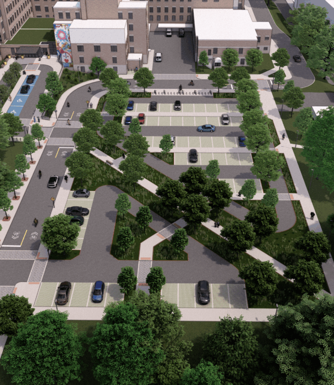 • Réaménager le stationnement de manière écoresponsable : végétalisation, zones piétonnes sécurisées, gestion durable des eaux de pluie.